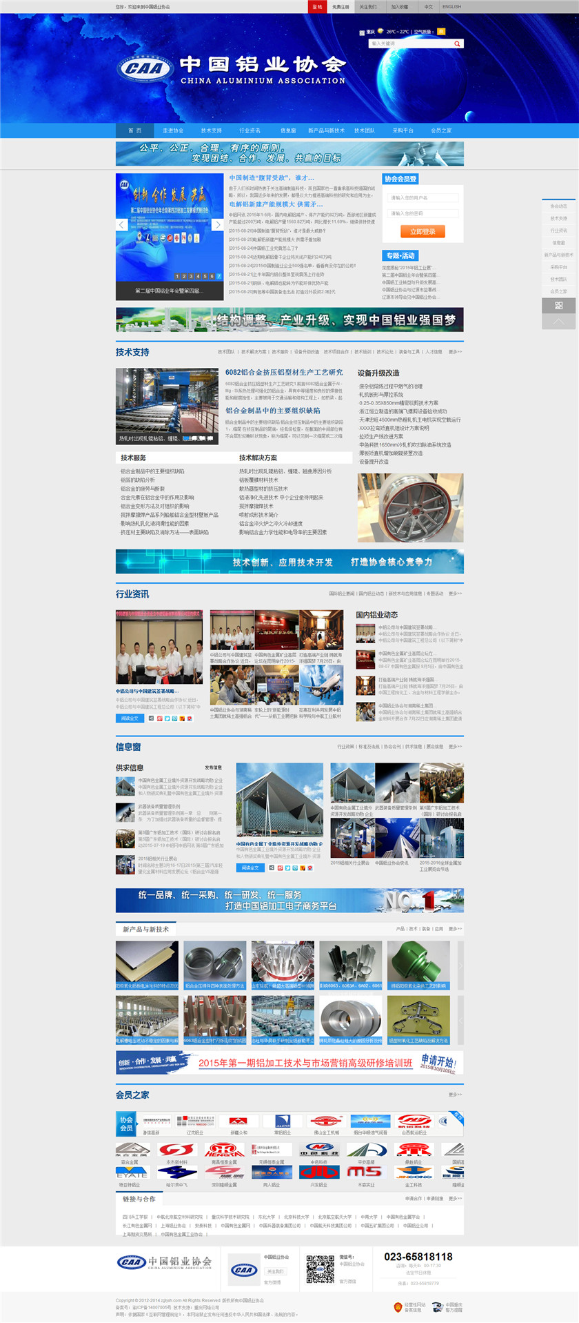 中国铝业协会是由中国国内主要从事铝合金铸造、板、带、箔、管、棒、型材、锻件等企业组成的行业协会组织,协会由国内具有一定规模和影响力的企业发起,已有三百多家会员企业,目前还有很多企业踊跃希望加入,协会现有会员企业年销售额1000多亿元人民币,协会会员企业分布在国内华东、华南、西南、环渤海、东北、胶东半岛等中国经济活跃地区;产品涵盖航空航天、兵器装...